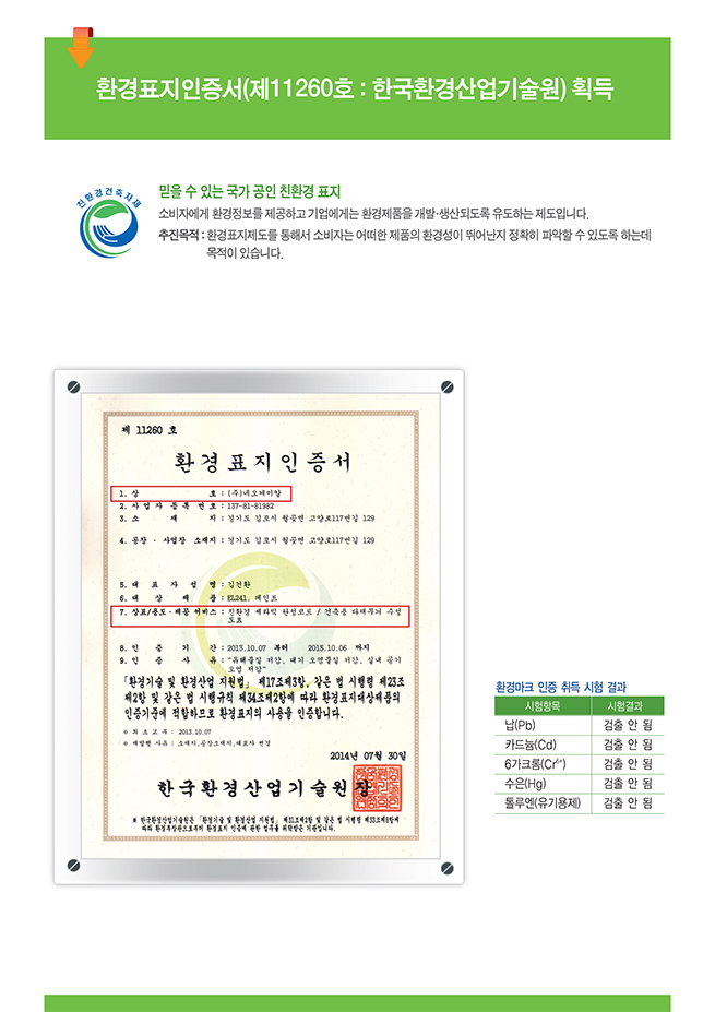 세라믹 탄성코트의 환경표지 인증서에 대하여 알아볼까요?