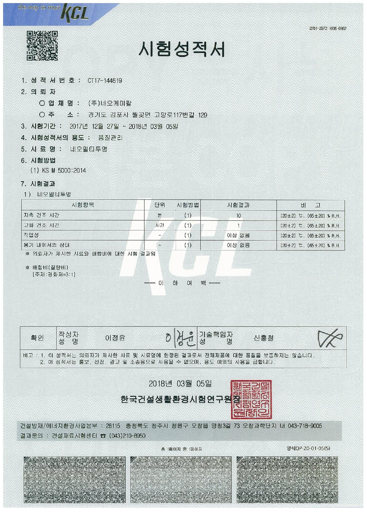 네오마블플로어_건축자재의 오염물질 방출 시험확인서
