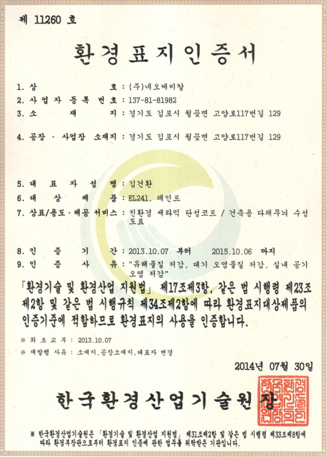 세라믹 탄성코트의 환경표지 인증서에 대하여 알아볼까요?