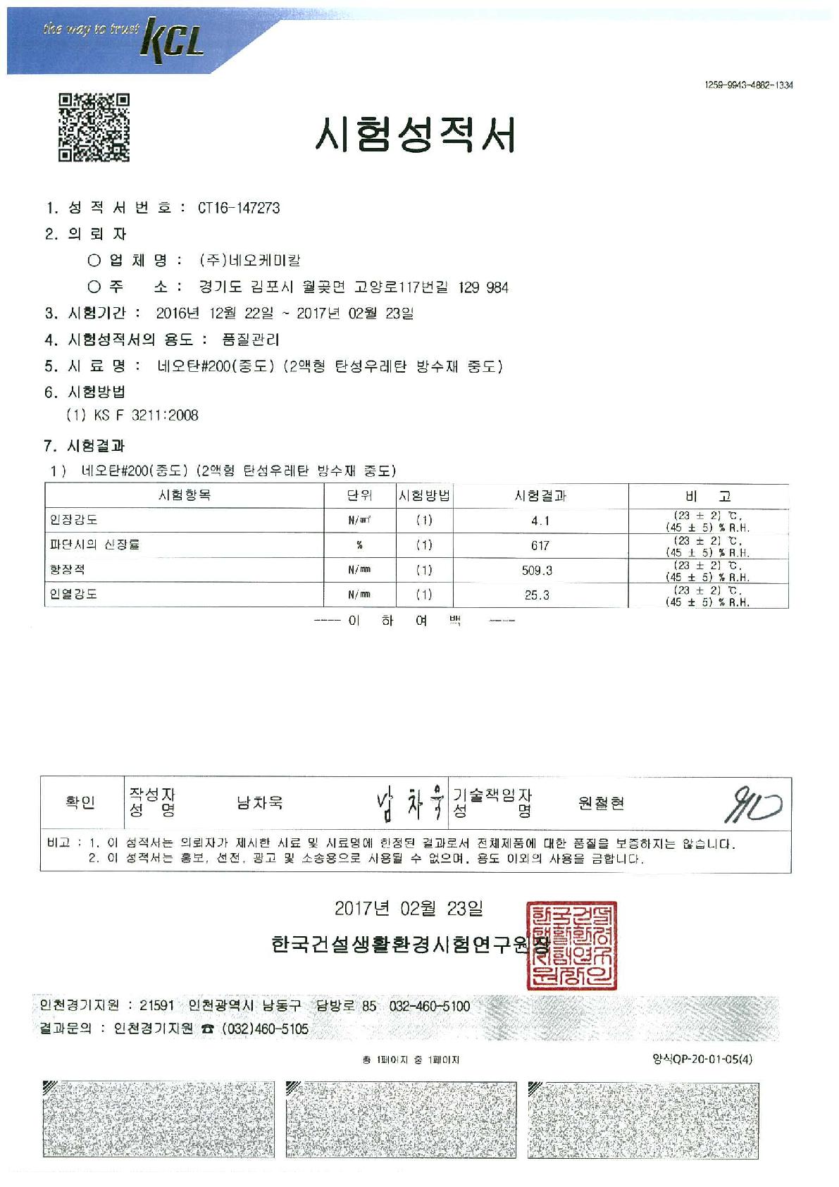 > 시험성적서