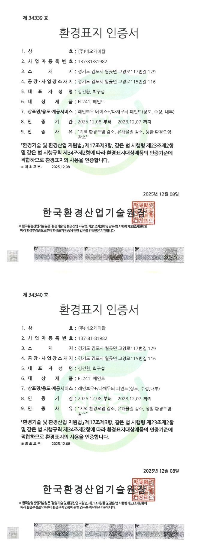 > 친환경인증제품 > 레인보우+ 인증서